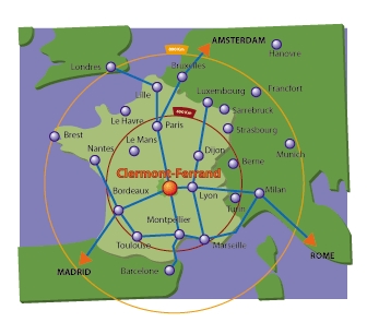 Clermont-Ferrand is located 420 km on the south of Paris and 200 km on the west of Lyon. Accessing Clermont-Ferrand is easy by car, train or plane. The Clermont-Ferrand airport is located 7 km away from the University. It provides several daily flights from/to Paris Orly and Charles de Gaulle. Several daily trains from Paris and Lyon to Clermont-Ferrand are available. It takes about 3 hours from Paris and about 2 hours from Lyon. Traveling from CERN is easy via Lyon by train (about 5 hours). Participants can be picked up at the railway station or at the airport by the Local Organizing Committee (on request, don't forget to specify your arrival date/time and further information in the Registration form).