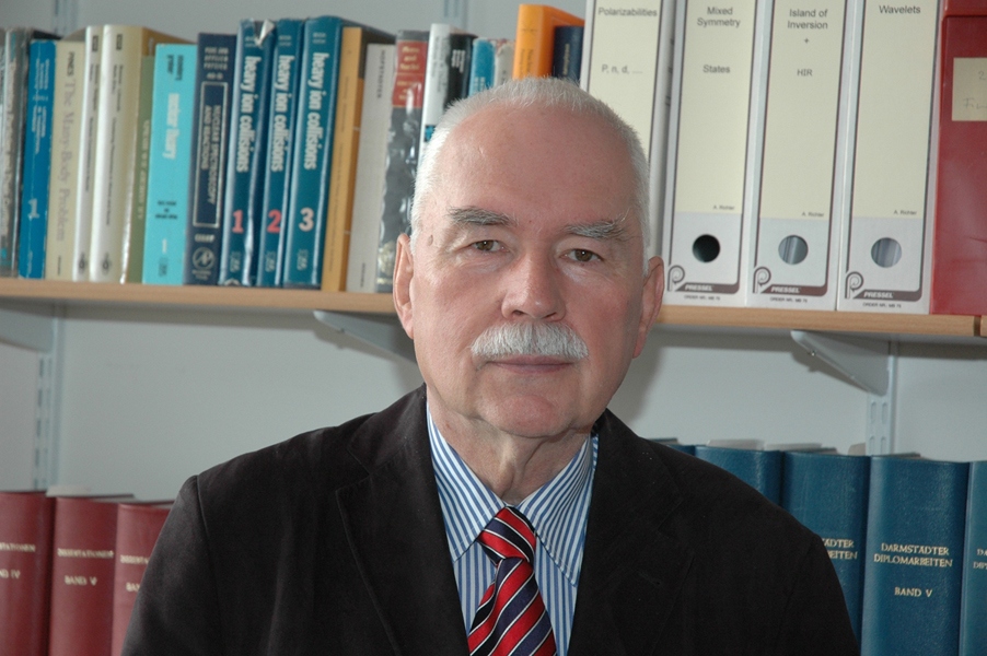 Achim Richter studied at the University of Heidelberg and received a doctoral degree in 1967. After postdoc stations at Florida State University and Argonne National Laboratory, in 1971 he was appointed associate professor at the University of Bochum. In 1974, he moved to the University of Technology Darmstadt as full professor and head of the electron accelerator laboratory. After his retirement in 2007 he was appointed director of the ECT* Center until 2012. While his research work spans a broad range of nuclear structure problems (maybe best known the discovery of the orbital magnetic dipole scissors mode), he also made important contributions to accelerator physics building the first superconducting electron accelerator in Europe and a free electron laser. As an offspring of the engagement in superconducting technology, he developed a successful program for the study of quantum chaos with flat superconducting billiards.
