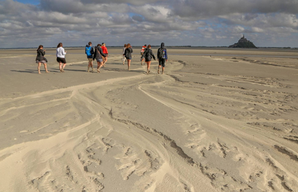 You will walk in water, on sandbars and mud at a slow pace. On the way you will discover quicksand and natural beauties of the bay and Mont. This walk lasts 2h15 for a distance of 2 to 4 km. This activity is accessible to everyone, even young children! The crossing is barefoot and bare legs: shorts. Plan to be covered on the upper body, windbreaker, fleece jacket, bring a small bottle of water, sunglasses and solar cream. At the end of the walk, you will need a towel to dry your feet and legs and a new pair of shoes if necessary.