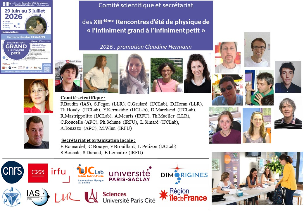 Le comité d’organisation est composé de chercheur.euse.s, et d’enseignant.e.s-chercheur.euse.s de la région parisienne, qui travaillent à comprendre les forces et les lois fondamentales de la nature qui régissent l’Univers, de l’infiniment grand à l’infiniment petit.