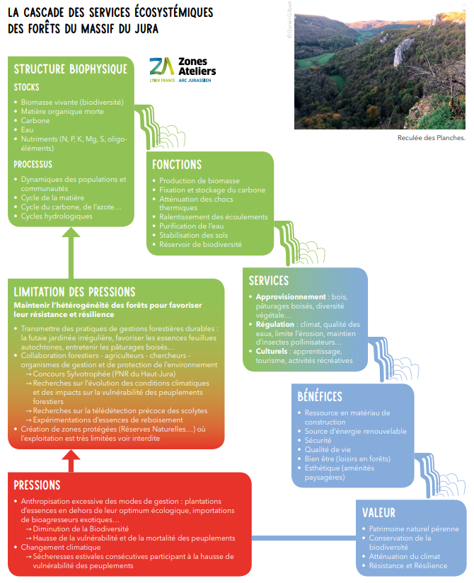 Ce webinaire vise à présenter une méthode originale pour aborder le fonctionnement des socio-écosystèmes à travers l'outil des "cascades des services écosystémiques" appliqué aux socio-écosystèmes de la Zone Atelier Arc Jurassien. Ces cascades sont une façon d'essayer de répondre à la question : "des capteurs, pour qui, pour quoi ?". Appréhender les terrains d'utilisation des instruments TERRA FORMA comme socio-écosystèmes, permet de faciliter la construction des problématiques de recherche au plus près du terrain avec les parties prenantes. Cette démarche s'inscrit dans les axes SAPS (science avec et pour la société) du wp4 TERRA FORMA et peut s'appuyer sur différentes méthodes (recherche collaborative co-construite, sciences participatives, métrologies citoyennes etc.).