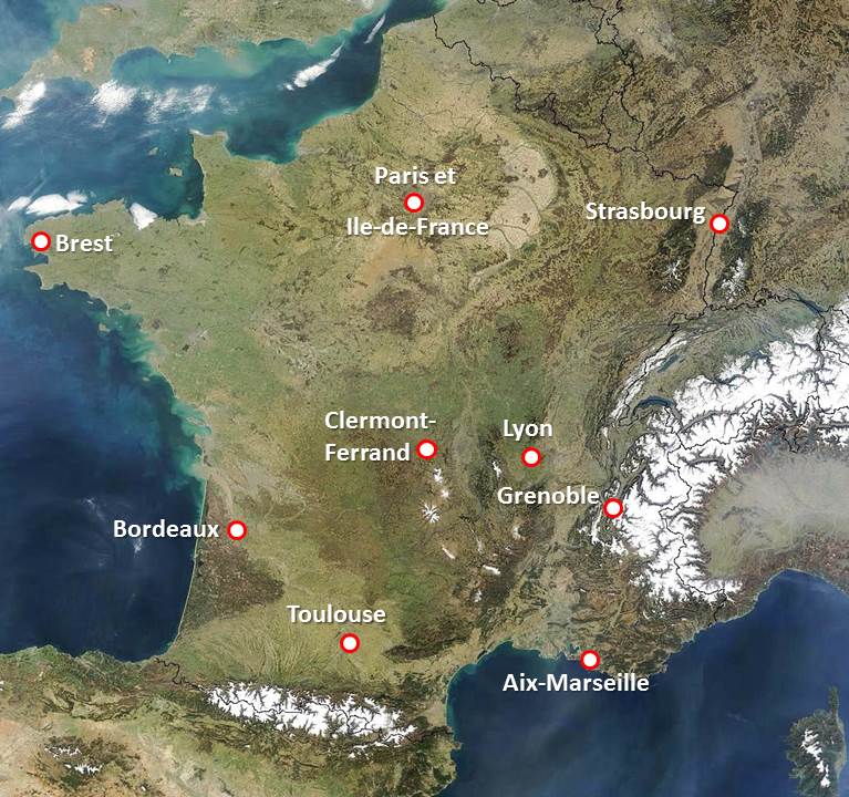 Ci-dessous une carte de France vous montrent d’où viennent les étudiant(e)s qui ont participé(e)s aux précédentes éditions de ces Rencontres.
