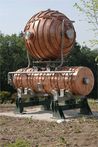 - Take the road up to the roundabout topped by a cavity of an ancient copper accelerating structure dating LEP.