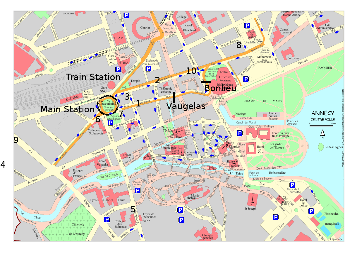 - From the Annecy train station to the laboratory in Annecy-le-Vieux : see map