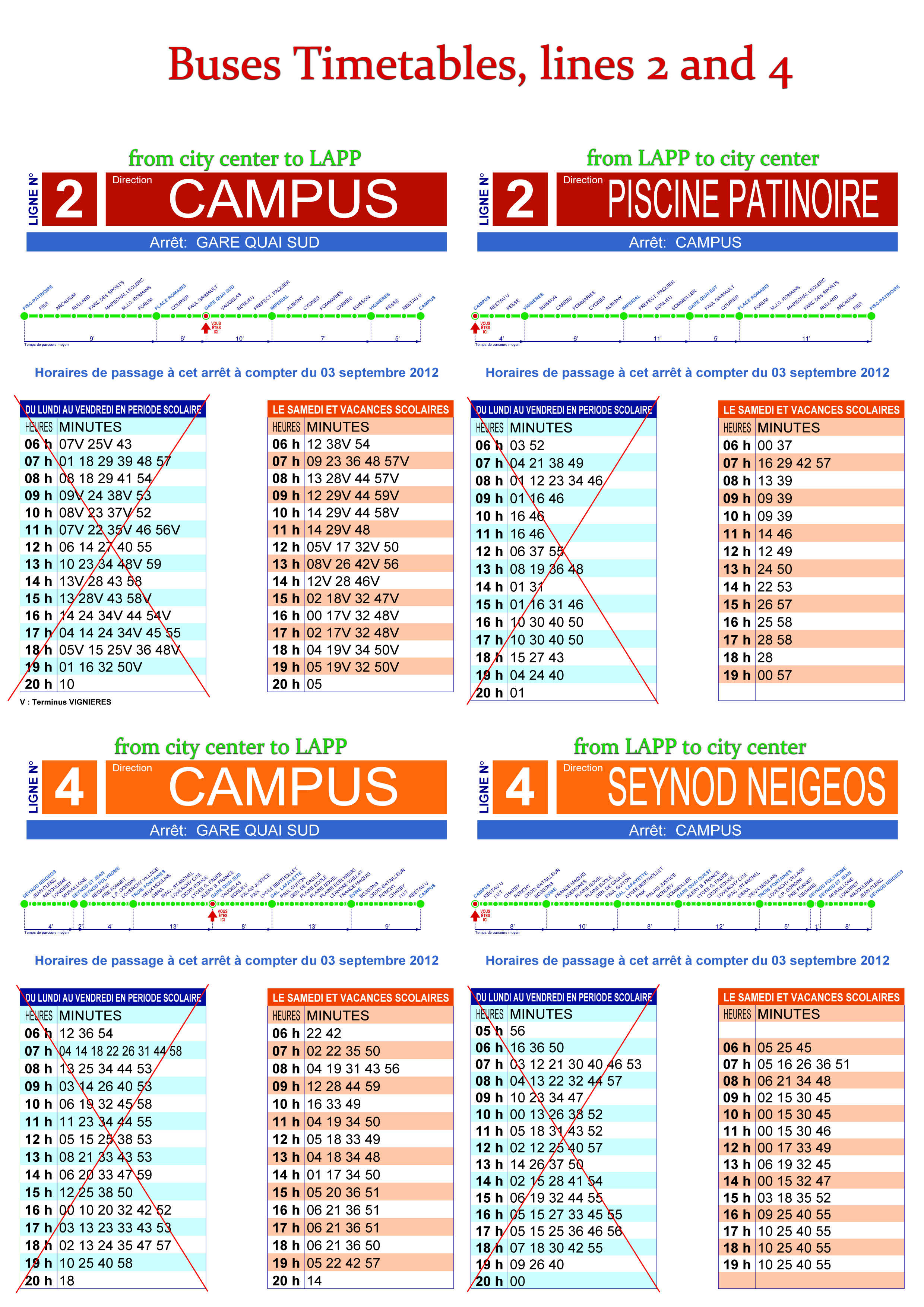 - If you take the bus No 2, make sure that the bus goes up to the stop CAMPUS. The buses indicated by V in the timetable do not go to CAMPUS (but to VIGNIERES).