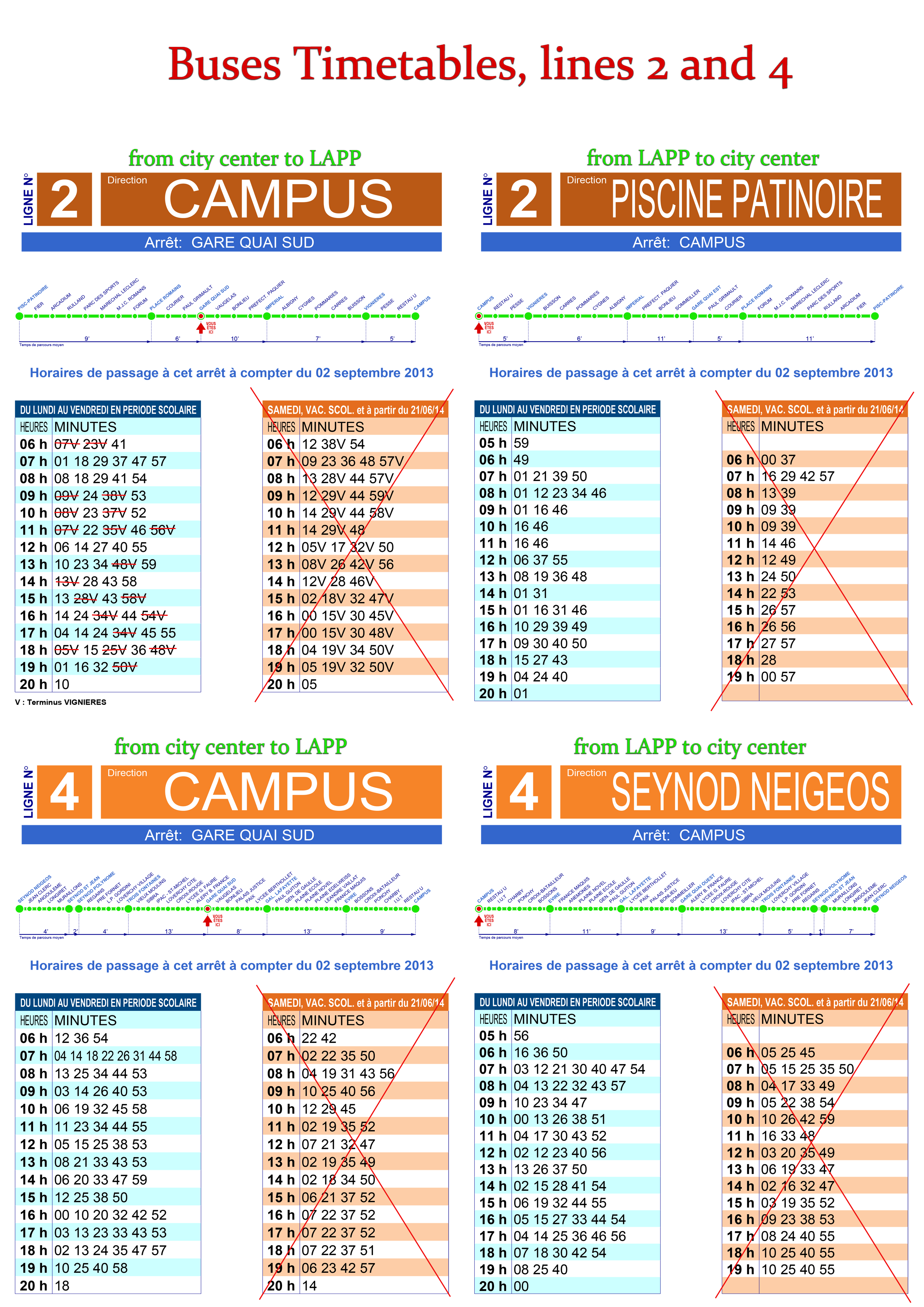 - Si vous prenez le bus n ° 2, assurez-vous que le bus va jusqu'à l'arrêt CAMPUS. Les bus indiqués par un V dans le calendrier ne vont pas à CAMPUS (mais à Vignières).