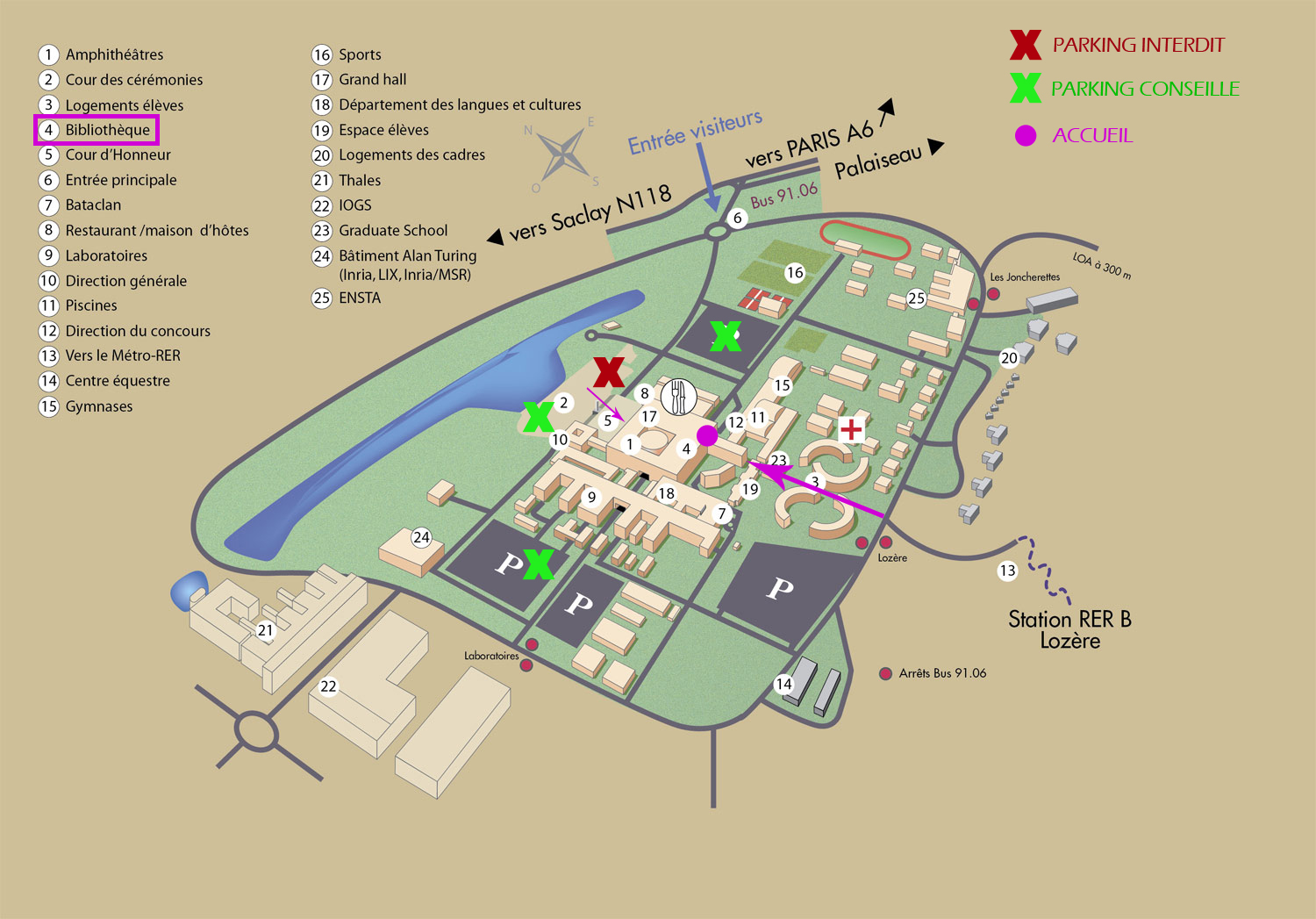 - If you come by bus from Massy-Palaiseau (buses 91.10 or 91.06B or 91.06C, NOT 91.06A or D!), please stop at "Lozere".